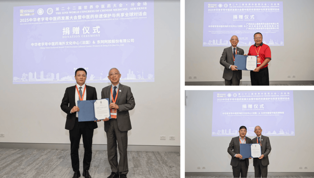 此外,东阿阿胶、潘高寿、王老吉、敬修堂以及东璧堂博物馆等机构,共同向“中华老字号中医药海外文化中心(法国)”进行捐赠。标志着中医药国际化从单打独斗的“产品出海”,升级为协同并进的“文化出海”与“生态共建”。