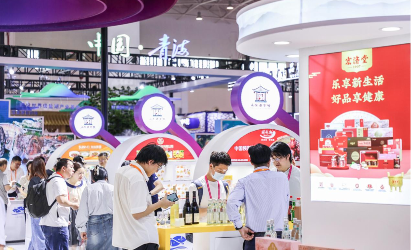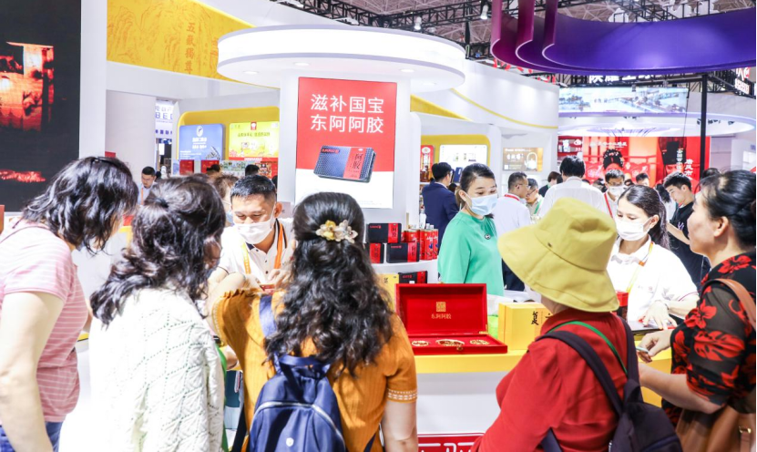 本届消博会现场,大家耳熟能详的东阿阿胶、德州扒鸡、宏济堂、崂山、即墨老酒、野风酥等老字号企业悉数亮相。